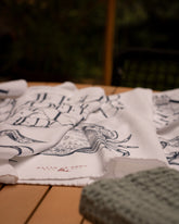 Schönes Geschirrtuch aus Baumwolle, erhältlich in weiß mit dunkelblauen Print. Aus 100% strapazierfähiger Baumwolle, 50 x 60 cm. Das Material trocknet schnell, nimmt leicht Wasser auf und wird mit jeder Wäsche weicher.